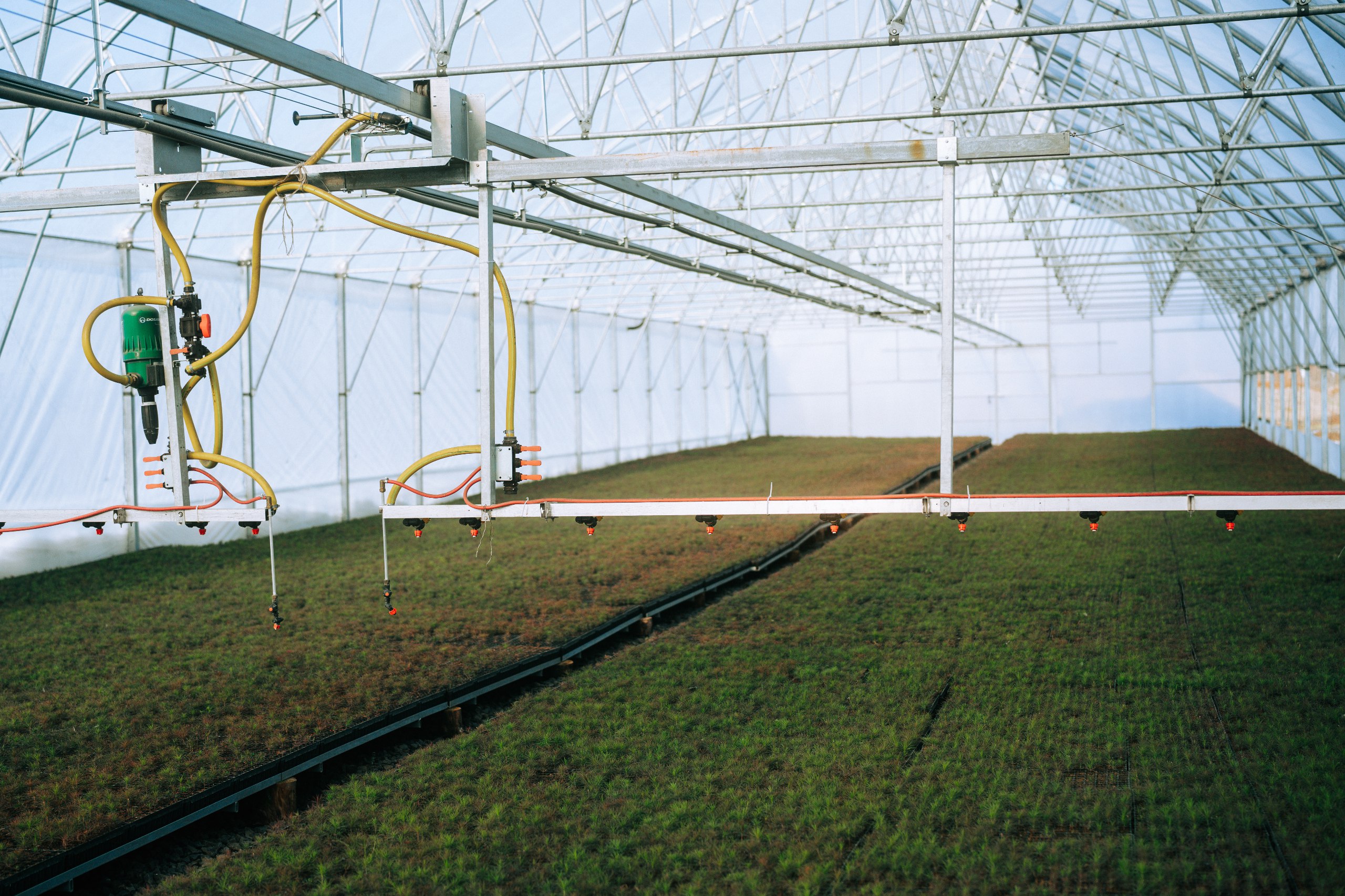 Питомник оборудован автоматической линией посева производительностью до 15 тысяч сеянцев в час. В «умных» теплицах контролируются все параметры микроклимата, необходимого для роста хвойных растений. Собственная метеостанция анализирует погодные условия и помогает поддерживать нужную температуру внутри теплиц, автоматически осуществляется проветривание и полив.